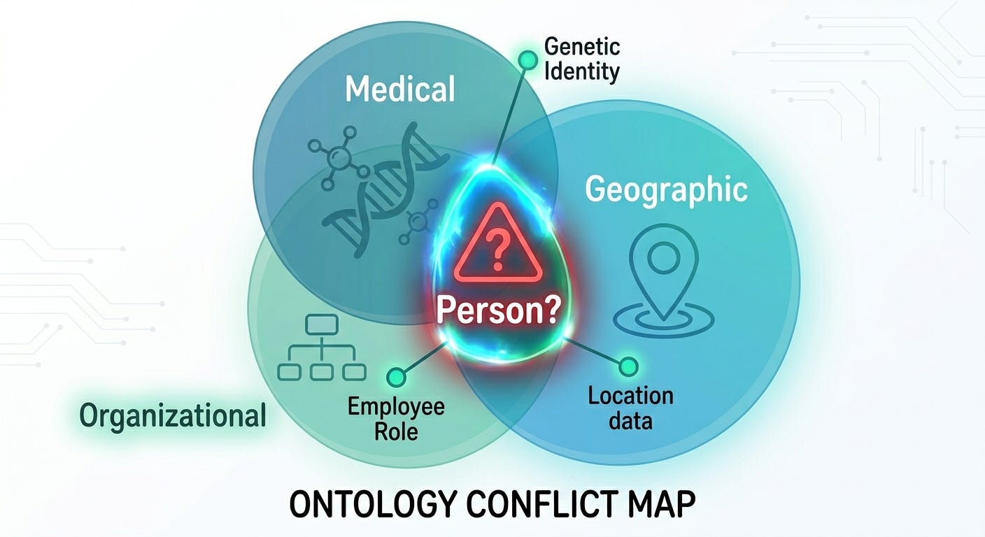 Real-world knowledge doesn’t fit into one neat schema. This is something I’ve dealt with repeatedly across projects. A hospital needs a medical ontology, an organizational one, and a geographic one. A research lab might combine domain-specific ontologies with FOAF, Dublin Core, and Schema.org.