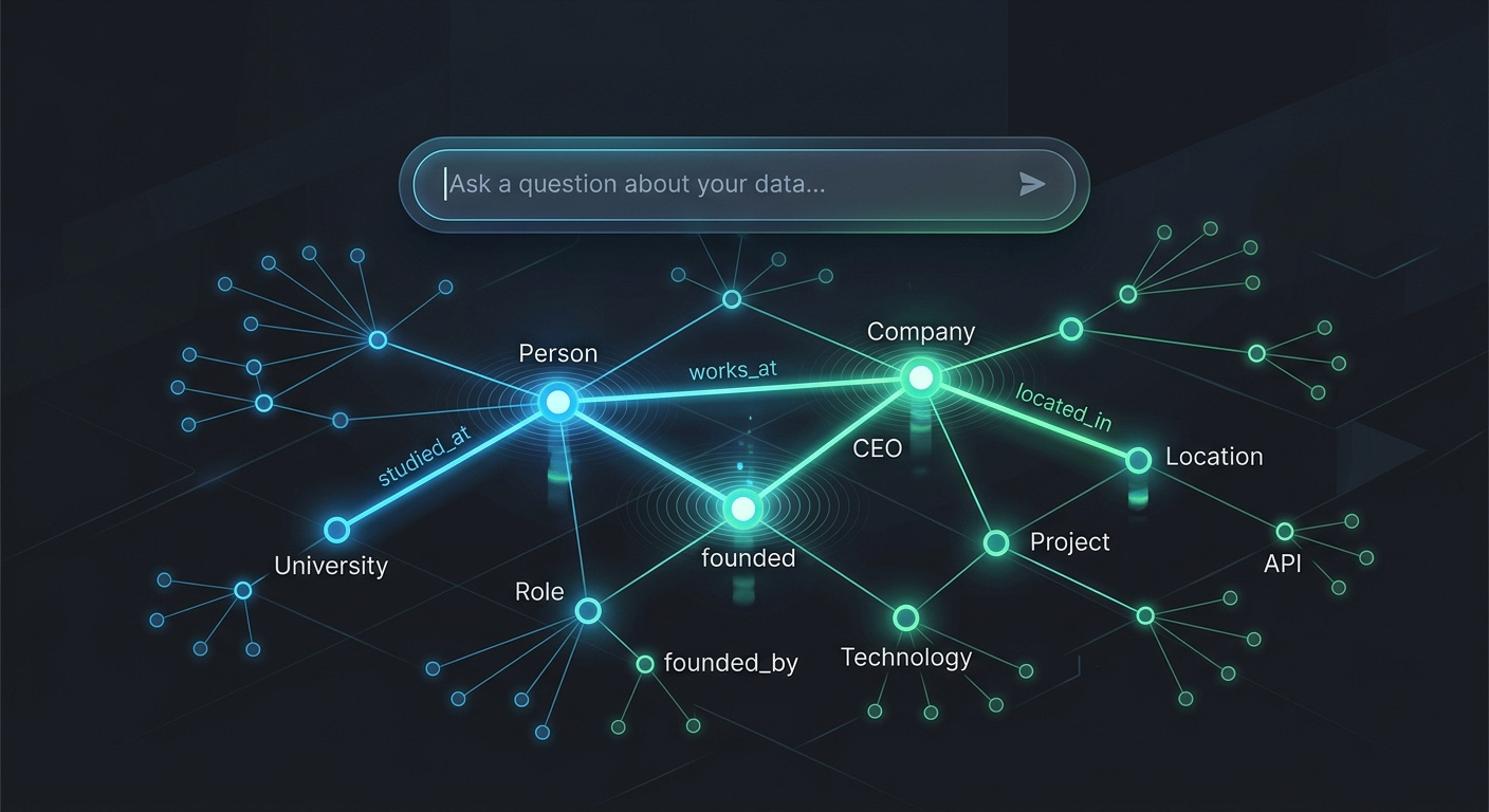 (Alice, worksAt, BrandPulse)Each triple is a fact. Together, they form a graph you can traverse. Want to know who works at companies Mehdi founded? Follow the edges. No JOINs, no pre-designed queries, no schema migration when you add a new relationship type.